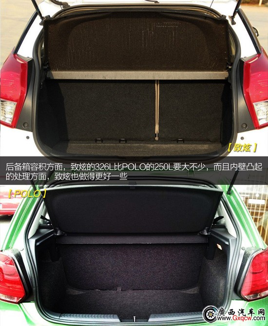 致炫與POLO的儲(chǔ)物空間都比較豐富,前排儲(chǔ)物兩款車型差不多,不過后排儲(chǔ)物致炫就不及POLO了,致炫只有一個(gè)可放水杯的地方,而POLO除了有放水杯的地方,后門板還有一個(gè)儲(chǔ)物槽,雖然比較窄,但還是可以放小一些如錢包、報(bào)紙、雜志等物品。