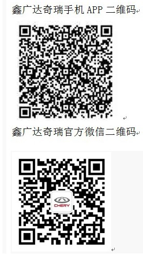 成功掃描下列二維碼并下載手機(jī)APP,即可到鑫廣達(dá)奇瑞展廳免費(fèi)領(lǐng)紀(jì)念禮品!