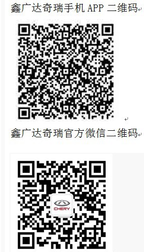 成功掃描下列二維碼并下載手機(jī)APP,即可到鑫廣達(dá)奇瑞展廳免費(fèi)領(lǐng)紀(jì)念禮品!