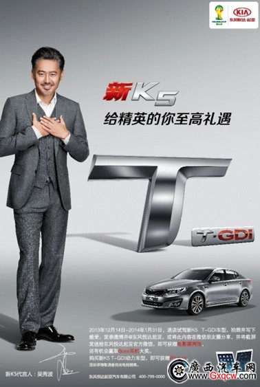 12月7日,肩負著銷量與品牌形象提升重任的新K5在南寧震撼上市。為了讓廣大車友充分體驗新K5"T"動力車型的卓越性能,東風(fēng)悅達起亞南寧通惠4S店特開展了挑"T"有禮活動,愛"T"的你又怎能錯過呢!詳詢0771-2244 666,地址:南寧市白沙大道69號(白沙友誼立交旁)。