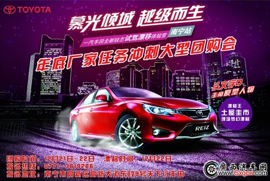 而在12月22日星期日下午13點(diǎn)30分,“頭文字D”卡通和電影版原型人物——漂移之王土屋圭市親臨南寧,將駕駛一汽豐田銳志現(xiàn)場表演各種花式漂移特技,將給南寧的市民帶來頂級(jí)的漂移盛宴。重磅的購車特惠,精彩的漂移表演,都將讓您盡享汽車生活樂趣!更多的優(yōu)惠和活動(dòng)等您來參加,還等什么呢?趕緊加入進(jìn)來吧!