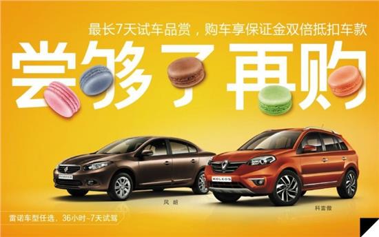 您還在擔(dān)心沒得試車就買車嗎?您還在擔(dān)心試車時間不夠不能了解全車嗎?現(xiàn)在......您不用在擔(dān)心了,雷諾將推出全新的超長試駕活動。