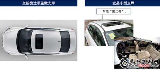 具體到這三款車,如果稍加留意,都會發(fā)現(xiàn)陽光的車頂上有兩道黑膠條線,這是點焊工藝的最明顯特征。點焊是一種成熟的工藝,也是一種高速、經(jīng)濟的焊接方法,只是,點焊由于焊點間有一定的間距,因而會對車身的堅固度有所影響。