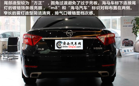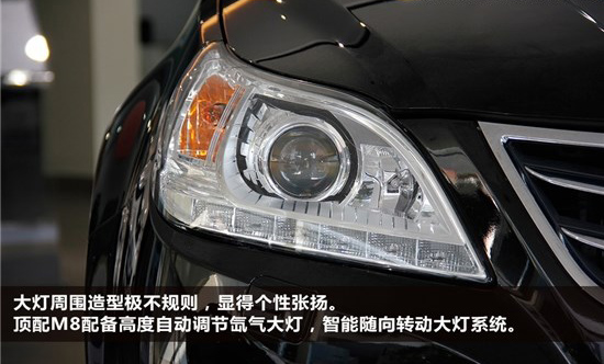 連接尾燈的鍍鉻條裝飾相當亮眼,配合海馬車標勾勒出一幅雄鷹伴著旭日從地平線上升起的畫面,很有動感。但鹵素尾燈和車門上縮水的鍍鉻裝飾看起來有些寒酸。總體來說,M8的尺寸和外形都可圈可點。
