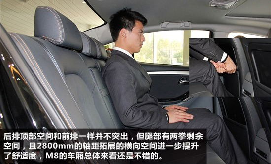 尺寸4845*1830*1475mm,軸距2800mm,這樣的數(shù)據(jù)在競(jìng)爭(zhēng)對(duì)手中并不出眾,但M8的空間倒是相當(dāng)不俗,尤其是車廂前后排的腿部空間優(yōu)秀,再配上厚實(shí)柔軟,縫合細(xì)致的真皮座椅,其打造的“家居”舒適度絕對(duì)是M8的一大賣點(diǎn)。除此以外,可折疊后排座椅也為后備箱提供了不小的隱形空間。
