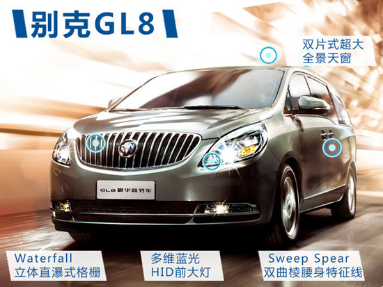 首先GL8有著別克品牌基因的標(biāo)志性直瀑式格柵,鍍鉻工藝?yán)浯蠓。多維藍(lán)光Bi-Xenon HID前大燈能夠全方位強(qiáng)化清晰的駕駛視野,雙曲棱腰身線使整個(gè)車身側(cè)面視覺效果更立體飽滿。雙片式超大全景天窗更能提升車內(nèi)采光并提供寬闊全景視野。