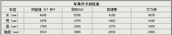既然是家庭出行,那么就避免不了對大空間的需求,而廠家也在MPV車身尺寸方面盡力做到最好。4車雖然均是5門7座MPV,但不同品牌車型在空間上也各有優(yōu)勢。別克GL8超過5米的車身長度和超過3米的軸距在4車當(dāng)中排在第一;艾力紳和納智捷 大7 MPV的車身尺寸各有所長,前者在長度和高度數(shù)據(jù)上略占優(yōu)勢,而后者的寬度和軸距的數(shù)值更大。而奧德賽的三圍和軸距在4車當(dāng)中排在了最后。