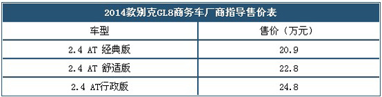 12月24日,上海通用汽車正式向市場推出2014款別克GL8商務(wù)車。據(jù)悉,三款新車型全面配備全新一代S6六速手自一體變速箱,售價維持不變?yōu)?0.9-24.8萬元。即日起,全國別克4S店接受新車預(yù)訂。具體售價信息詳見下表: