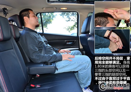 鋒馭前排座椅的頭部空間非常充裕。不過(guò)副駕駛的腿部由于中控臺(tái)的設(shè)計(jì)顯得有些局促。2600mm的軸距在同級(jí)別中并不突出,它的后排空間也中規(guī)中矩,圖中1.80米的乘客坐在后排并不局促,但也不算寬敞,在該級(jí)別中屬中等水平。不過(guò)由于后排座椅椅背有些過(guò)于平直,所以導(dǎo)致坐姿不太放松。