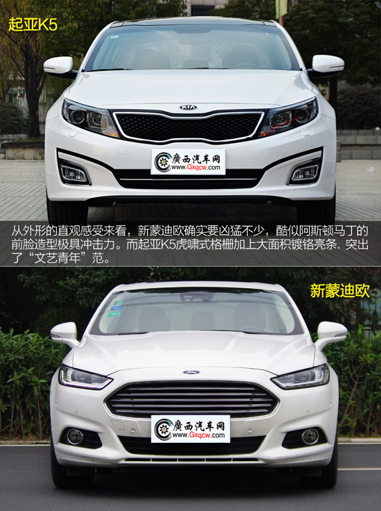 由于2014款K5繼續(xù)享受老款的優(yōu)惠,所以我們選擇K5 2.0T AT-Special和新蒙迪歐2.0L GTDI200豪華型來作為對比車型,兩車優(yōu)惠過后售價大約在22萬元。