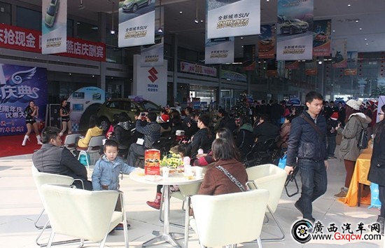 (廣西汽車(chē)網(wǎng) 訊)2013年12月21日上午10點(diǎn),廣西恒晟鈴木4S店給全市鈴木的新老客戶(hù)舉辦了一個(gè)溫馨的“周年慶”購(gòu)車(chē)團(tuán)購(gòu)會(huì),本次團(tuán)購(gòu)會(huì)的主題為“三人成團(tuán),買(mǎi)一贈(zèng)一”活動(dòng)。本次活動(dòng)現(xiàn)場(chǎng)上,到場(chǎng)的客戶(hù)都提前領(lǐng)到了圣誕大禮包精美“店慶禮”。歲末鉅惠讓利的團(tuán)購(gòu)活動(dòng)讓在場(chǎng)客戶(hù)又一次體驗(yàn)到長(zhǎng)安鈴木對(duì)客戶(hù)的超值優(yōu)惠。本次進(jìn)店150余人共52組,現(xiàn)場(chǎng)訂車(chē)30臺(tái)。