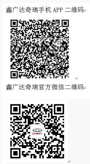 成功掃描下列二維碼并下載手機APP,即可到鑫廣達奇瑞展廳免費領(lǐng)紀念禮品!