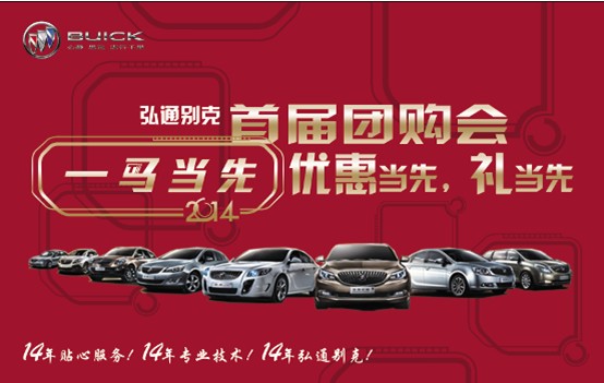 2014年只要馬到成功?NO NO...,還要馬上有別克!為了給2014年這個(gè)承載著中國(guó)人夢(mèng)想的一年再添華麗篇章,弘通別克14年品質(zhì)老店特舉辦馬年首屆大型團(tuán)購(gòu)會(huì),為回饋新老客戶,讓大家在緊接而來(lái)的馬年能開(kāi)足馬力迎新歲。新歲。