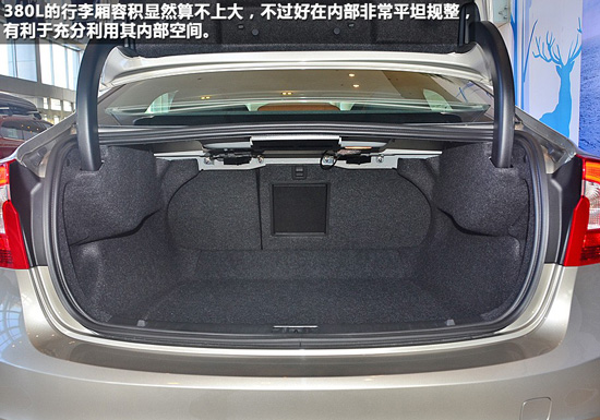 沃爾沃S60L的行李廂內(nèi)部非常平整,雖然380L的容積算不上優(yōu)秀,但規(guī)整的內(nèi)部結(jié)構(gòu)還是有利于充分利用其空間的。
