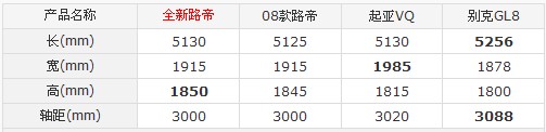 全新一代路帝車身尺寸為5130*1915*1850mm,軸距3000mm,其中長和寬相比老款均增加5mm,從數(shù)據(jù)上來看,相比GL8與起亞VQ在高度上比較突出,進(jìn)去猶如機艙般感覺。