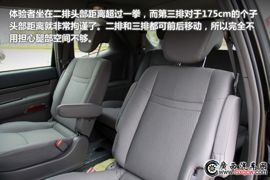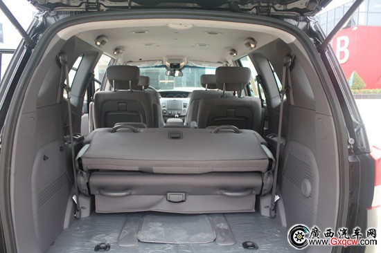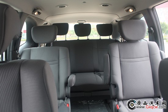 第二排乘坐空間是乘客座椅最為寬敞的,獨(dú)立座椅配有座椅扶手,長(zhǎng)途出行時(shí)能夠緩解疲勞。其中前排靠背設(shè)置了小桌子,滿足日常生活、商務(wù)使用;另外中央扶手后端設(shè)計(jì)了迎賓燈,在夜間為第二三排走道內(nèi)提供了便利。