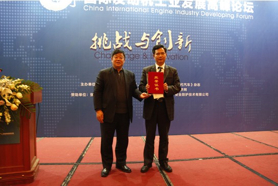 (廣汽乘用車副總經(jīng)理古惠南接過“動(dòng)力中國2013年度發(fā)動(dòng)機(jī)獎(jiǎng)”)