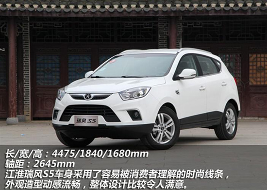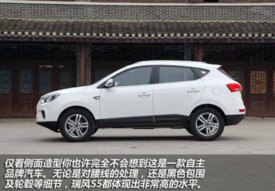 瑞風S5的時尚外形設計是車型的一個亮點。作為一款城市SUV車型,瑞風S5車身線條流暢,瑞風S5前臉設計借鑒了傳統(tǒng)的京劇臉譜元素,具有家族特征,但是它更注重對細節(jié)的設計,例如采用新的前后燈組、中網格柵樣式等等。