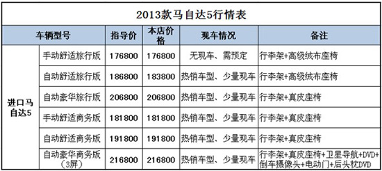 新款馬自達(dá)5在配置方面有多處提升。增配了倒車影像、后視鏡自動防眩目功能,提升駕駛安全性。其他配置方面,新增手套箱照明功能、USB接口等功能、多功能方向盤等配置。綜合來看,2013款馬自達(dá)5在配置上與時俱進(jìn)了。 動力方面,2013款馬自達(dá)5采用2.0L自然吸氣引擎,最大功率106kW、最大扭矩180Nm。搭配6速手動或5速自動變速箱。動力表現(xiàn)突出中低轉(zhuǎn)速的動力輸出,在4500轉(zhuǎn)就可以達(dá)到180Nm的峰值扭矩。