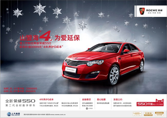 6、用車無憂:購榮威550送1年延長質(zhì)保至“4年或12萬公里”。