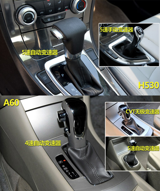 變速器方面,H530配備的是5速手動和5速自動變速器,而A60配備的是5速手動、4速自動(1.6L)和CVT無級變速器(2.0L),這也和老款軒逸配備的一模一樣(老款軒逸雖然和軒逸經(jīng)典版是同一款車型,但軒逸經(jīng)典取消了配備CVT無級變速器的2.0L車型,只保留了1.6L車型),選擇性上要優(yōu)于H530。