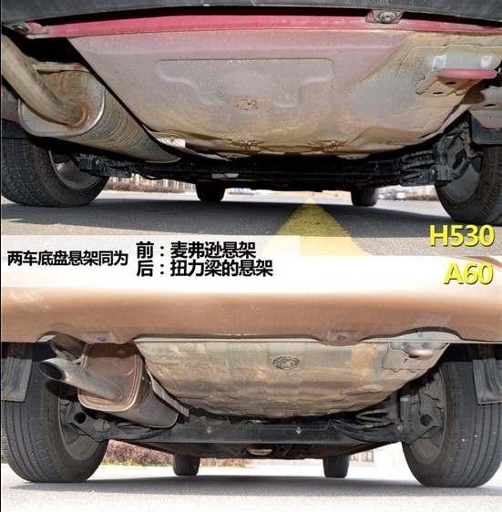 H530和A60的底盤懸架同為前麥弗遜+后扭力梁的懸架組合,只是A60的后懸架帶有穩(wěn)定桿,整體性要好一些。另外,調(diào)校方面也有所不同,H530的懸架調(diào)校比較中性化,不過相比A60要硬朗一些,而A60的懸架調(diào)校得很軟,過顛簸路面的時候,能很好的抑制底盤帶來的震動,但過彎時的側(cè)傾比較嚴(yán)重。