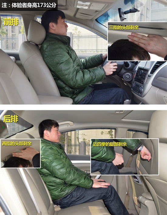 乘坐空間方面,身高173公分的體驗(yàn)者調(diào)整好座椅后,在A60上能獲得三指的頭部剩余;保證前排座椅不調(diào)整的情況下,173公分的體驗(yàn)者來到后排,在A60上能獲得兩指的頭部剩余和近四拳的腿部剩余。