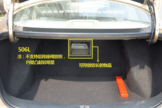 A60的后備箱容積為506L,雖然深度比較深,但后排座椅不能放倒,所以只能靠中間與車內(nèi)連通的位置存放較長的物品了,但是由于內(nèi)壁凸起比較明顯,因此會(huì)影響到后備箱的利用率。