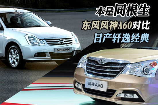 東風風神A60就是在這種大背景下“速成”的產物,它采用東風日產經典軒逸的平臺,在外形、內飾設計方面加入了東風自己的理解和改進,并且在配置上更勝一籌。為了提高競爭力,風神A60還在今年1月份推出冠軍版,比普通款增加了諸如日間行車燈等配置。下面我們就比較下本是“同根生”的東風風神A60和日產經典軒逸。