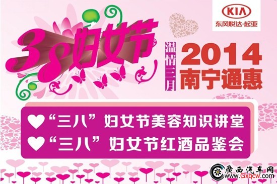 正值春暖花開的日子,東風(fēng)悅達(dá)起亞南寧通惠誠意開展三八婦女節(jié)系列活動(dòng),即日起至三月十日開展美容知識講堂,讓你學(xué)會(huì)如何更美麗!紅酒品鑒會(huì),讓你成為一個(gè)優(yōu)雅的女人。南寧通惠推出全系車型特惠鉅獻(xiàn),最高綜合優(yōu)惠高達(dá)43000元,女性購車還可獲節(jié)日專屬優(yōu)享好禮,敬請到店!詳詢東風(fēng)悅達(dá)起亞南寧通惠4S店,電話:400-922-0771 轉(zhuǎn)8128,地址:南寧市白沙大道69號(白沙友誼立交旁)。