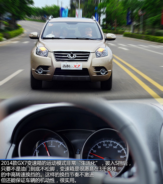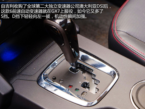 想當(dāng)初在2009年,吉利收購了全球第二大獨(dú)立變速器公司澳大利亞DSI(Drivetrain Systems International),正式開始了洋變速器的“本土化”進(jìn)程。而全球鷹GX7作為吉利首款應(yīng)用DSI生產(chǎn)的6前速自動變速器的SUV車型,無論是平順度還是響應(yīng)性在當(dāng)時的自主品牌SUV里都是出類拔萃。而今,2014款的GX7正式上市,除了外觀和配置的小幅升級,機(jī)械上的變化最明顯的就是在原有6AT的基礎(chǔ)上增加了S擋運(yùn)動模式。今天筆者就通過一天短暫的試駕來檢驗一下多了S擋的GX7在動力把控上到底有何變化。