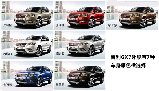 新車(chē)共有7中車(chē)身顏色可以選擇,其中,珊瑚紅、琥珀金、寶石藍(lán)以及摩卡棕是此次的新增色,每一種顏色都很好地表現(xiàn)出了GX7的精致和飽滿。