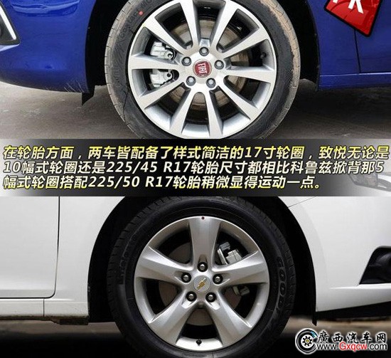 在輪胎方面,兩車皆配備了樣式簡(jiǎn)潔的17寸輪圈,致悅無(wú)論是10幅式輪圈還是225/45 R17輪胎尺寸都相比科魯茲掀背那5幅式輪圈搭配225/50 R17輪胎稍微顯得運(yùn)動(dòng)一點(diǎn)。