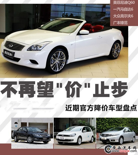 前期,小編曾盤點過需加價提車的幾款車型,很多用戶都深有同感。這次,小編給大家來點福利,官方降價相信是很多人都拍手稱贊的做法,不同于各地區(qū)的優(yōu)惠,這是全國各地的朋友們都能享受到的福利,畢竟大家好才是真的好。目前比較受關(guān)注的降價車型分別是馬自達6、高爾夫6、鋒范以及英菲尼迪Q60。