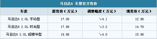 為了給全新一代馬自達6鋪路,馬自達對旗下馬6的2.0L車型市場指導(dǎo)價格進行了調(diào)整,從調(diào)整幅度來看,馬自達6最高降幅達到4.1萬,售價區(qū)間由原先的17.08-19.98萬調(diào)整為12.98-15.98萬元,配置方面則沒有任何變化。另外,大部分地區(qū)的用戶購車還可在調(diào)價后的價格基礎(chǔ)上享受1萬元以上的優(yōu)惠幅度,很有吸引力。