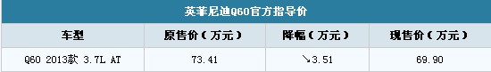 英菲尼迪官方調(diào)整了G Convertible(現(xiàn)更名為英菲尼迪Q60)敞篷跑車的售價,新車從之前73.41萬元下調(diào)至69.9萬元,降價3萬元以上。