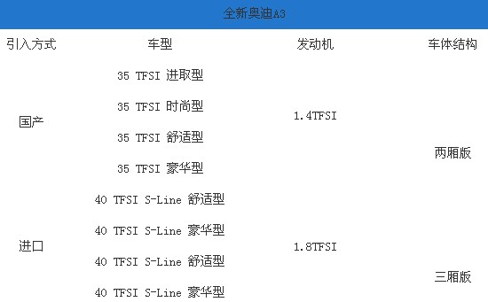 日前我們從相關(guān)渠道獲悉,全新奧迪A3將于3月21日正式上市,這次上市共分進(jìn)口和國產(chǎn)兩個版本,共計8款車型。與之前收到的只有進(jìn)口版本的車型上市的消息稍有出入。