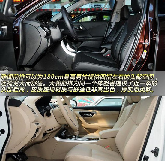 作為2.0L中配車型,兩車前排均提供了正副駕駛席電動(dòng)座椅,在此基礎(chǔ)上,雅閣還比天籟多出了前排座椅加熱,這對(duì)于北方冬季用車更加舒適。