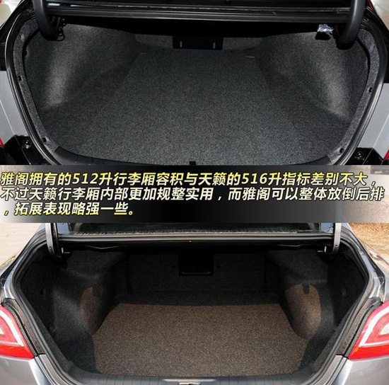 空間對(duì)比:雅閣后備廂可以拓展,天籟的座椅更為舒適