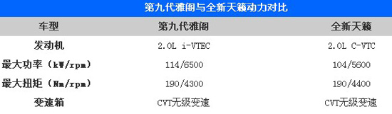 九代雅閣對比全新天籟