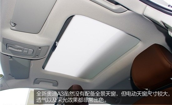 全新奧迪A3雖然沒有配備全景天窗,但電動(dòng)天窗尺寸較大,透氣以及采光效果都非常出色。