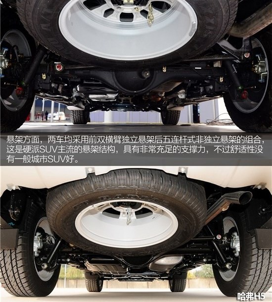 懸架方面,兩車均采用前雙橫臂獨(dú)立懸架后五連桿式非獨(dú)立懸架的組合,這也是硬派SUV主流的懸架結(jié)構(gòu),具有非常充足的支撐力,不過(guò)舒適性沒(méi)有一般城市SUV好。