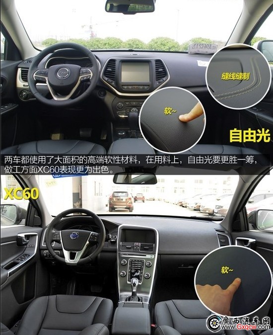 自由光中控臺(tái)采用“鷗翼式”設(shè)計(jì),在傳承家族特色的同時(shí)傳又融入了潮流多變的線條。XC60懸浮式中控也完完全全的走著家族模式,突出家居氣息。在用料上,兩者不相上下,清一色的軟性材質(zhì),自由光上的軟性材料還使用了縫線縫制,手感上已經(jīng)接近真皮材料,挺會(huì)唬人的。在細(xì)節(jié)的處理上,XC60做的自然要做的更為細(xì)膩一些,但自由光的內(nèi)飾做工也算完全顛覆了之前我們對(duì)美系車那種粗糙的印象。