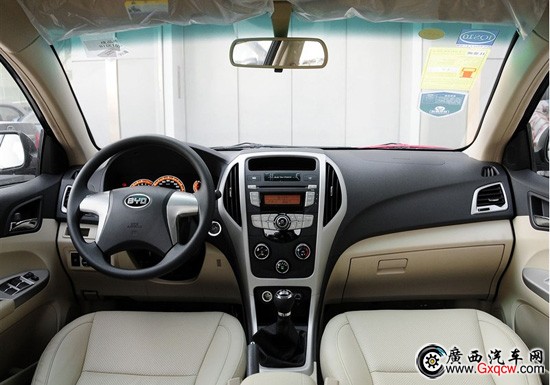 2014款比亞迪F3車前臉進氣格柵采用黑色蜂窩狀設(shè)計,上面引入鍍鉻裝飾,前大燈造型也經(jīng)過重新設(shè)計,內(nèi)飾引入大尺寸液晶顯示屏,兩側(cè)采用扇形空調(diào)出風口,副駕駛座的空調(diào)出風口造型也進行了改變。