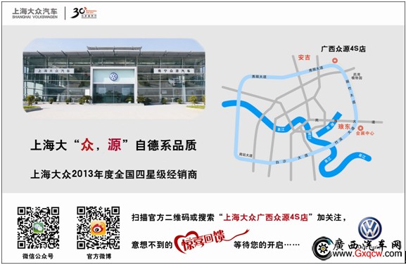 廣西眾源榮獲“上海大眾全國四星級經(jīng)銷商”余熱不減,廣西眾源再次完成一季度銷量目標(biāo),榮膺金源集團(tuán)汽車4S店一季度冠軍獎(jiǎng)!4月12-13日,上海大眾廣西眾源“春雷行動(dòng)”即將盛大上演,讓您提前享受超越車展優(yōu)惠價(jià);顒(dòng)期間蒞臨秀廂大道199號金源國際汽車城D區(qū)——廣西眾源4S店展廳,新POLO鉅惠超15000元現(xiàn)金、全新桑塔納鉅惠超10000元,同享行車記錄儀超值贈(zèng)送及1年/2年零利率,3年低利率優(yōu)惠信貸政策;新帕薩特鉅惠超2萬元現(xiàn)金,更有驚喜“三選一”豪華大禮贈(zèng)送;顒(dòng)期間更有新朗逸、朗行、途安、全新途觀等超值現(xiàn)車供應(yīng)!按豪仔袆(dòng)”全場售價(jià)僅71900元起,日供僅需50元起。更多車型優(yōu)惠敬請垂詢:廣西眾源400-922-0771 轉(zhuǎn)8085