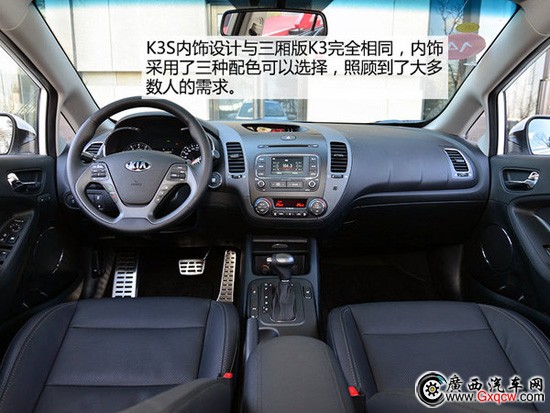 尾部的造型看著很簡(jiǎn)潔,線條表現(xiàn)的車尾依舊是重心降低,所以在整個(gè)K3S的外觀設(shè)計(jì)上都營(yíng)造出更多的運(yùn)動(dòng)和時(shí)尚的感覺(jué),來(lái)吸引年輕的消費(fèi)群體。內(nèi)飾的設(shè)計(jì)則與K3完全相同,甚至在配置上也和K3的車型配置相同。K3S的內(nèi)飾配色分為全黑、黑棕和黑米三種配色,最大程度的滿足了消費(fèi)者的嗜好。