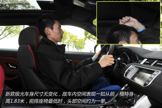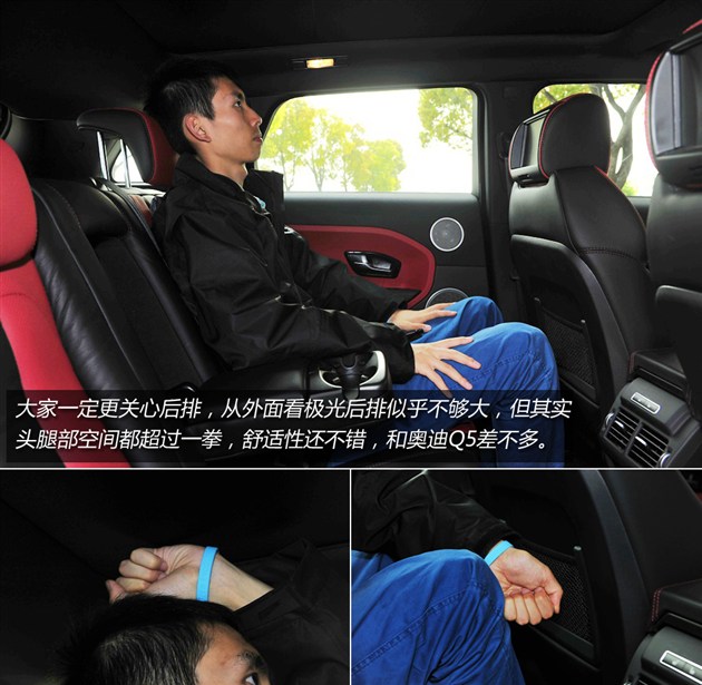 路虎攬勝極光外觀看起來給人感覺比較小,但其實(shí)它的內(nèi)部空間足夠日常之用。從實(shí)際體驗(yàn)看,身高1.83米的模特,后排頭腿部都有超過一拳的空間。這種表現(xiàn)和奧迪Q5很相似,在同級別中算不錯(cuò)了。