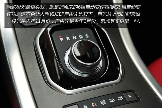 新車最大升級是采用ZF 9擋自動變速器,相比之前的6擋自動變速器綜合性能有所提升,重量上反而減輕7.5公斤。從時(shí)間上來說,路虎攬勝極光搭載9擋自動變速器的時(shí)間早于JEEP自由光,但JEEP鋪天蓋地的宣傳,讓大家覺得自由光是第一個(gè)吃螃蟹的人。