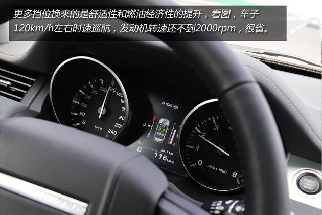 在實(shí)際駕駛過程中,極光上面的這款9擋自動變速器與發(fā)動機(jī)有非常好匹配。在低中高各種速度區(qū)間下?lián)Q擋都很平順。并且能在巡航時(shí)充分降低發(fā)動機(jī)轉(zhuǎn)速,從而達(dá)到減少油耗的目的。和之前的6擋變速器相比,新極光在很多方面都有進(jìn)步。動力系統(tǒng)的整體感覺也要比JEEP自由光好很多。