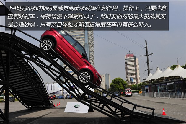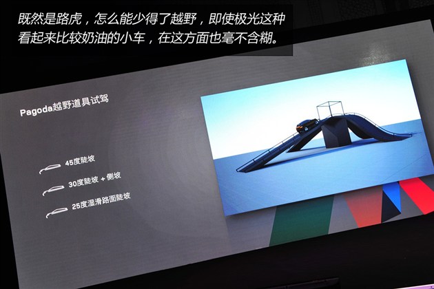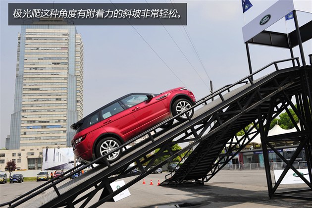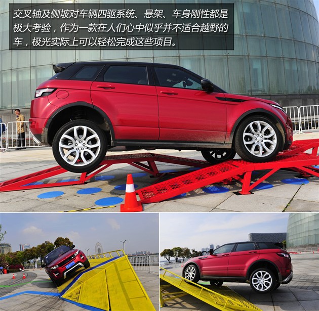 在試駕活動中,路虎也搭建了兩塊場地供大家體驗(yàn)越野性能,包括45度坡道、交叉軸等項(xiàng)目。極光當(dāng)然有非常好的表現(xiàn)。個(gè)人覺得在這些項(xiàng)目中,極光傳遞出來最重要的信息就是——我比你想象中厲害多了。和同級別車型比較,極光越野性能的確很有優(yōu)勢。畢竟,越野對其它品牌城市SUV來說更像是附加功能,對路虎來說這是基礎(chǔ)必備的看家本領(lǐng)。